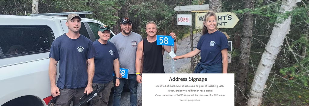 The McKenzie Clearwater Fire Department has undertaken the task of identifying all roads and islands with properties they serve to protect. Their Service Area is significant and consists mainly of unorganized territory. For Emergency Services to operate effectively, a good understanding of how to identify and get to a location is of the upmost importance. Time is of the essence in any emergency, where a wrong turn could be the difference between life and death or stopping a fire before it spreads to additional structures.